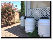 Rain barrels come in various sizes from about 50 to well over 1,000 gallons. Smaller barrels, which can be “daisy chained” to provide more storage, can be purchased from stores or online and low-cost barrels can be made from used plastic food-grade drums. The City of Prescott requires a minimum of 100 gallons of total storage capacity.