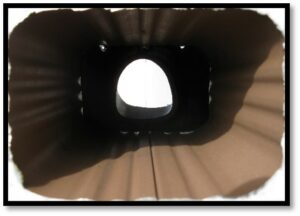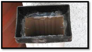 Fig 3 ─ Rubber diverter in downspout that blocks ¾ of its area. Note small opening for passing water.