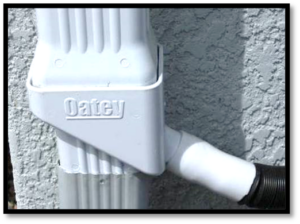 Fig 7 ─ Adapter connected to lower part of downspout. Note silicon seal.