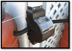 An effective diverter not prone to overflowing the barrel (but should be sealed to prevent leaking) is the Oatley Mystic Rainwater Collection System (Fig. 4). The supplied hose kinks where it was folded for shipping. The Oatley does not include an inlet fitting for the barrel. I suggest mounting the Oatley diverter at the same height as the barrel fitting, not 12” higher as the instructions say, unless the barrel is sealed and you provide an air vent hose extending above the diverter.