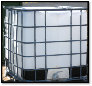 Larger homemade systems can be made from intermediate bulk containers, which come in 175 and 275-gallon sizes or larger. These have a metal frame that reinforces a plastic container (Fig. 8). They should be painted or covered with a light-blocking fabric to prevent algae growth.