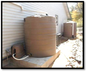 Fig 9 ─ Twin 650-gallon rainwater tanks beside Prescott home.